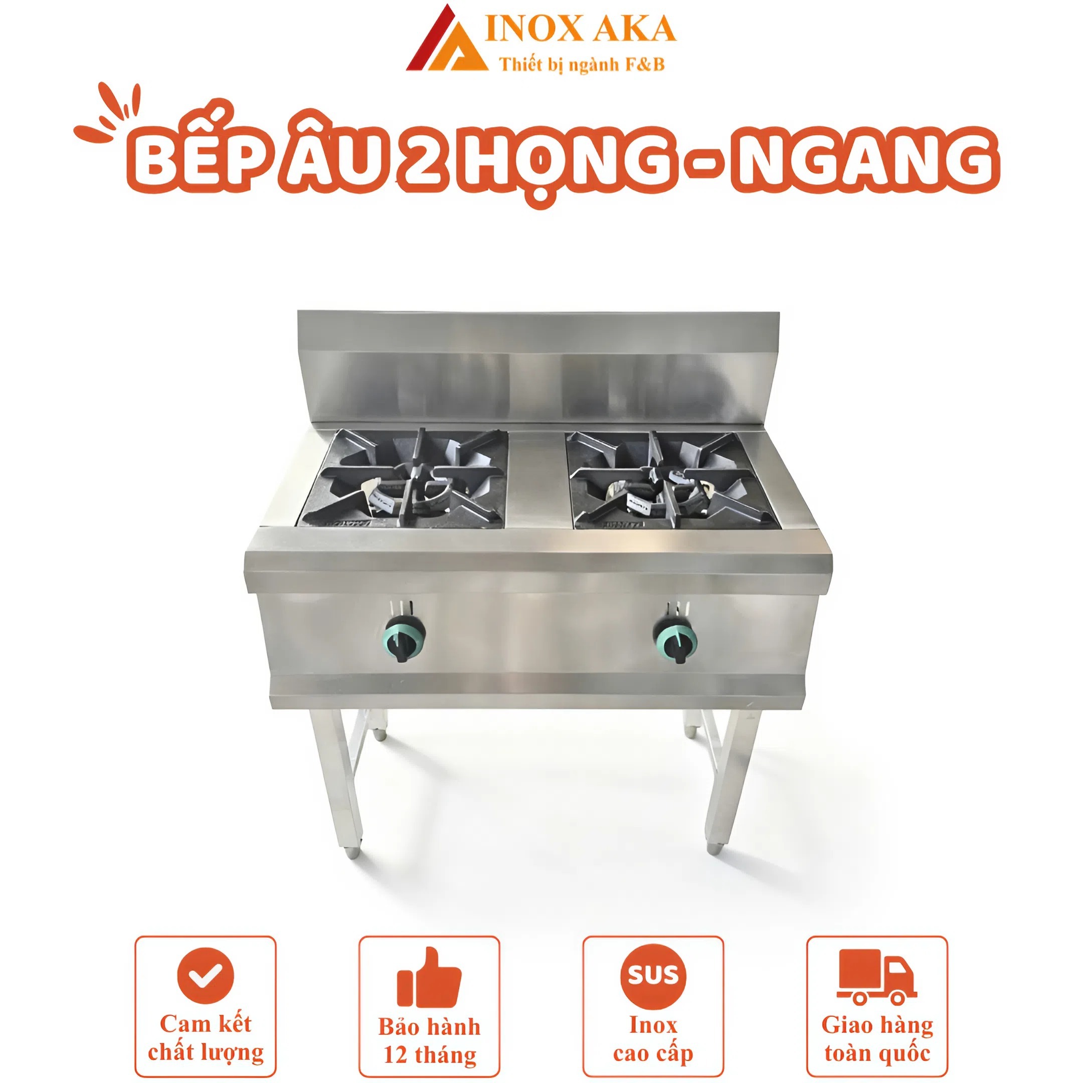 Bếp Âu 2 họng – ngang do Inox Aka phân phối được sản xuất trực tiếp tại xưởng, độ bền cao, hoạt động ổn định, tiết kiệm nhiên liệu và phù hợp với môi trường bếp chuyên nghiệp.