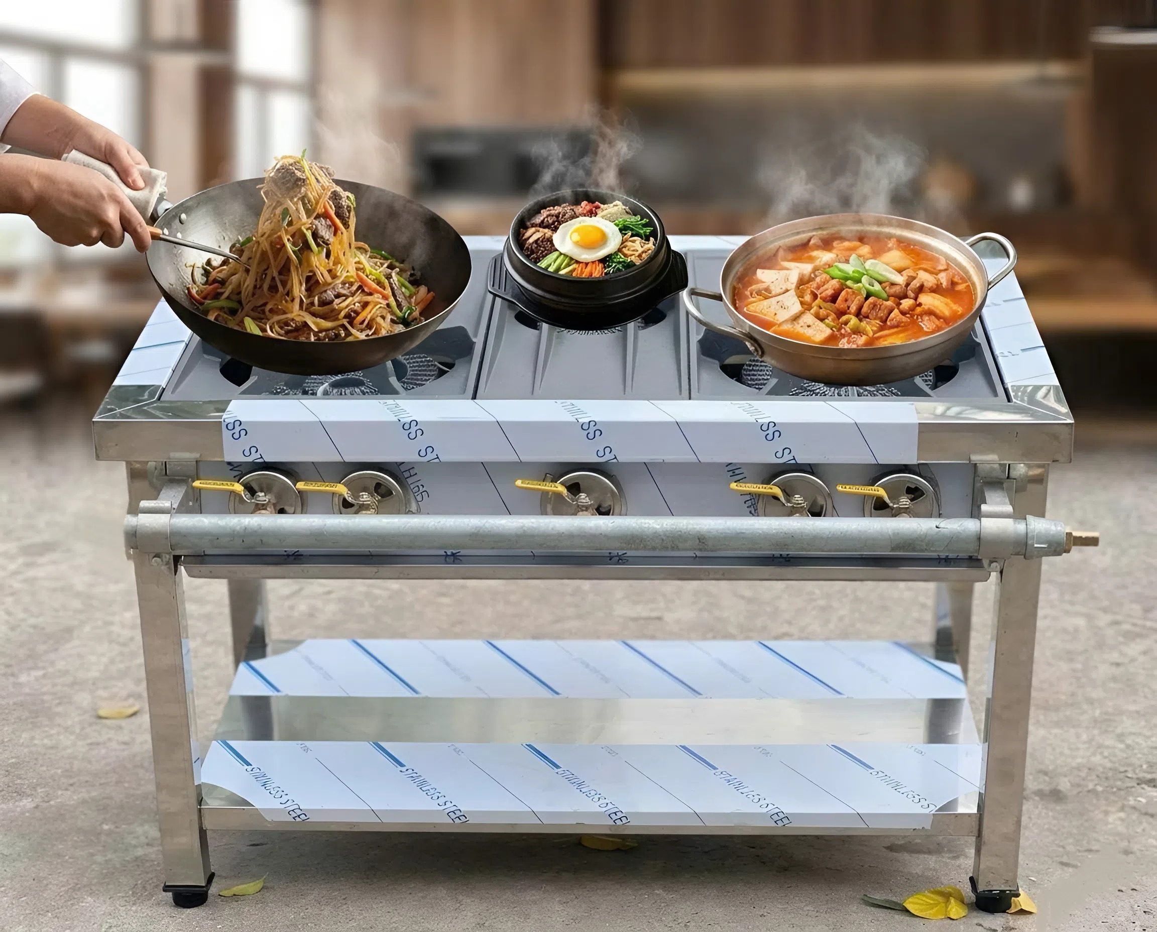 ✅ Chọn Bếp gas Hàn Quốc cần dựa vào quy mô và thực đơn; Bếp 2 họng to 1 họng nhỏ phù hợp quán có thực đơn ít món và quy mô nhỏ.
