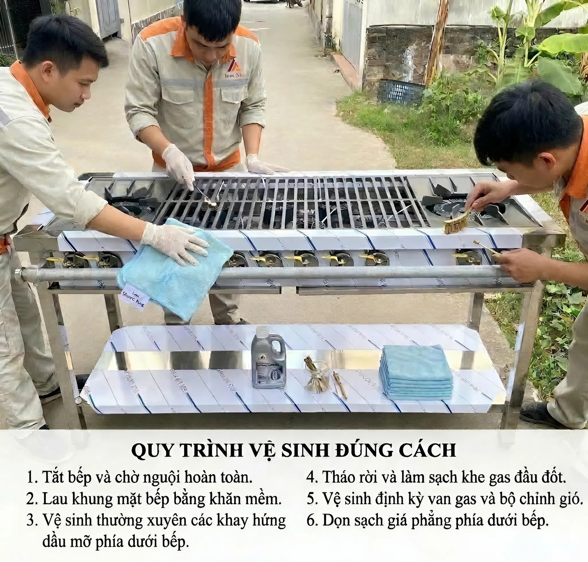 Sau mỗi ca làm việc, phải tắt bếp và chờ nguội hoàn toàn rồi mới tiến hành lau chùi.