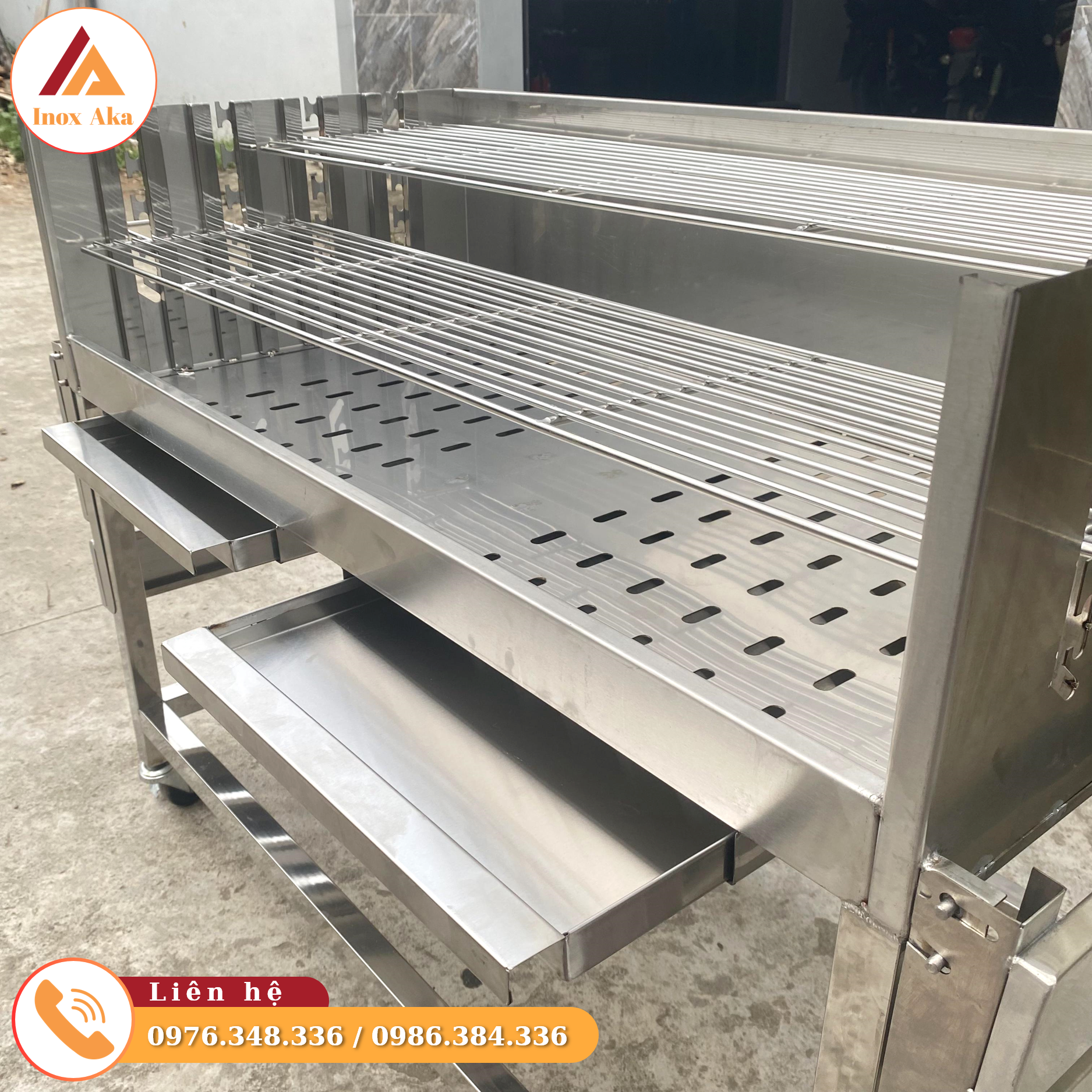 - Đặc biệt hơn, thiết kế của các loại Bếp nướng than hoa tại Inox Aka tối ưu hóa tối đa sự tiện dụng. Bếp có hai vỉ nướng có thể nâng cao thấp để điều chỉnh nhiệt lượng, giúp người dùng dễ dàng kiểm soát độ chín của từng loại thực phẩm.