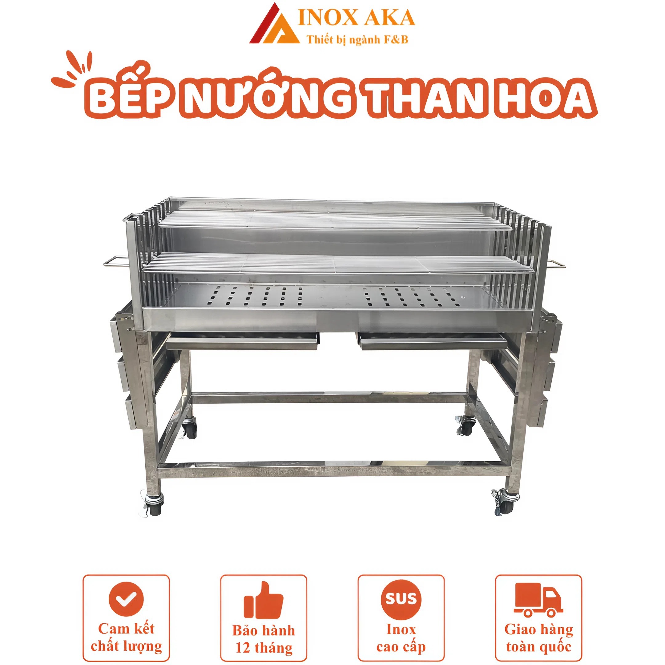 Bếp nướng than hoa được Inox Aka sản xuất trực tiếp tại xưởng, độ bền cao, hoạt động ổn định, tiết kiệm nhiên liệu và phù hợp với môi trường bếp chuyên nghiệp.