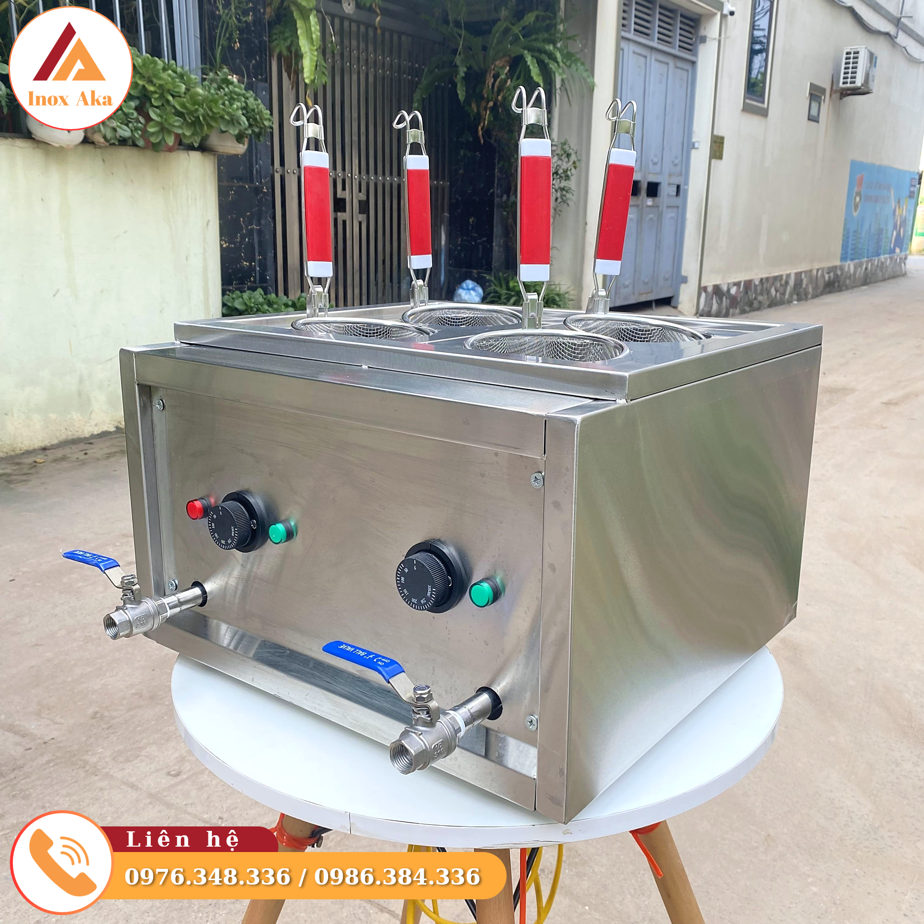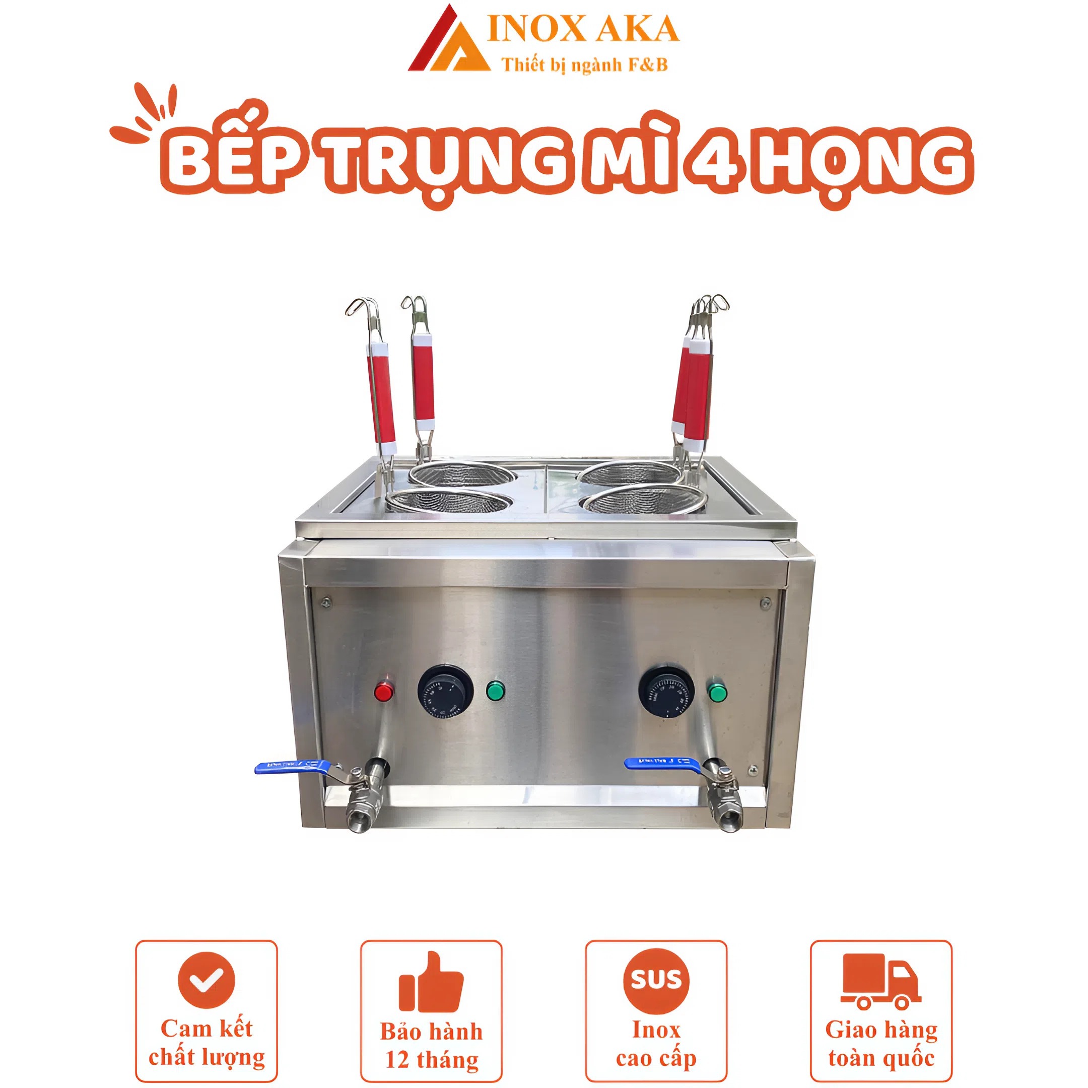 Inox Aka là đơn vị chuyên cung cấp các thiết bị nhà hàng, khách sạn, bếp ăn công nghiệp. Bếp trụng mì 4 hộc dùng điện được sản xuất và phân phối tại xưởng, giá hợp lý và đảm bảo chất lượng.