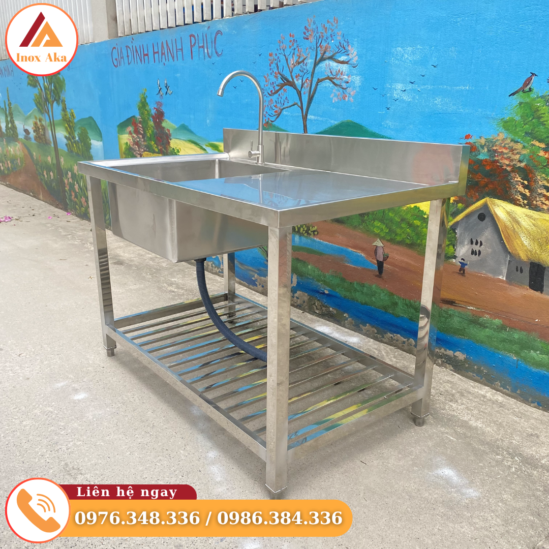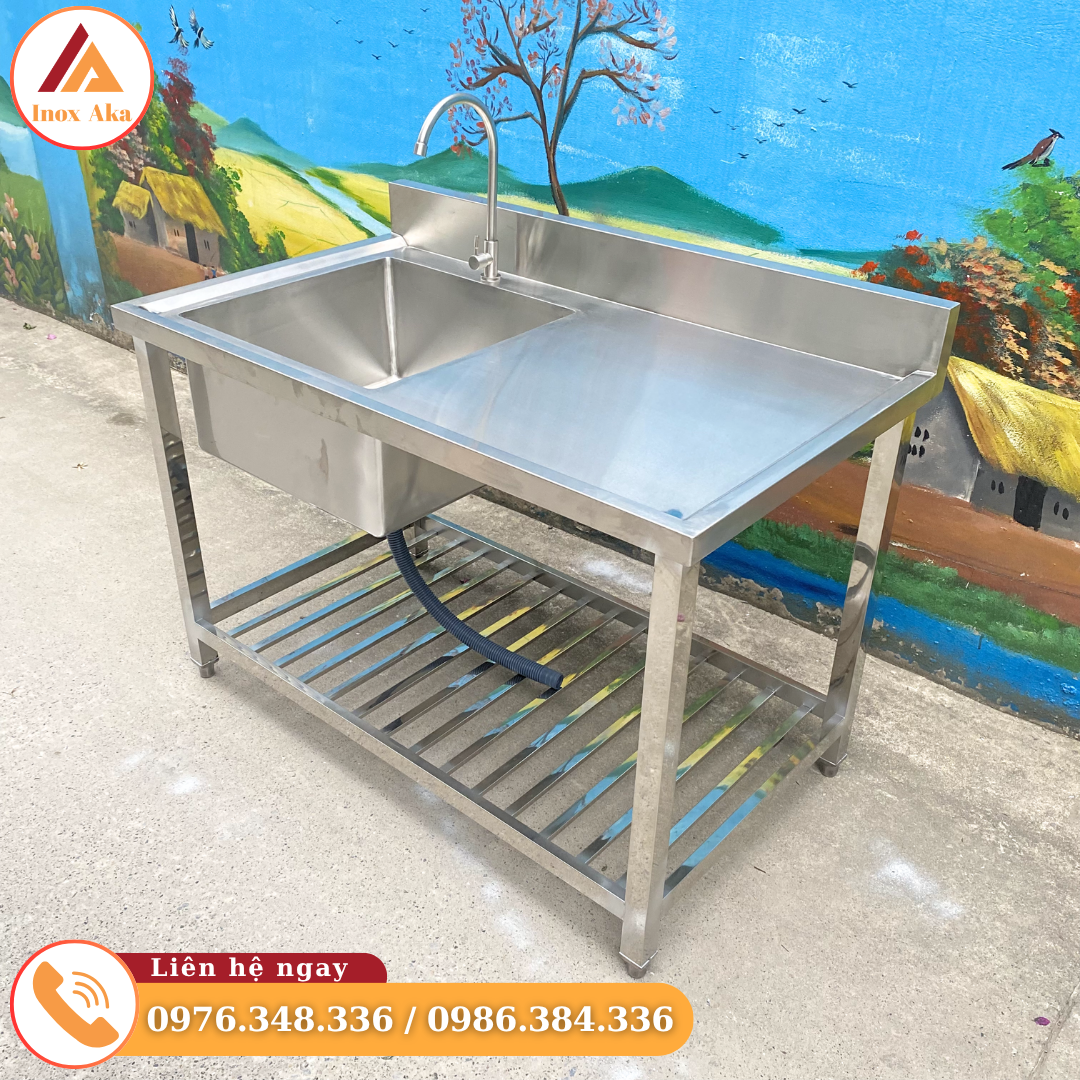 Chậu rửa inox được thiết kế 1 hộc sâu, giúp hạn chế bắn nước trong quá trình sử dụng. Phần bàn bên cạnh rộng rãi, thuận tiện để đặt thực phẩm, dụng cụ hoặc sơ chế ngay tại chỗ.