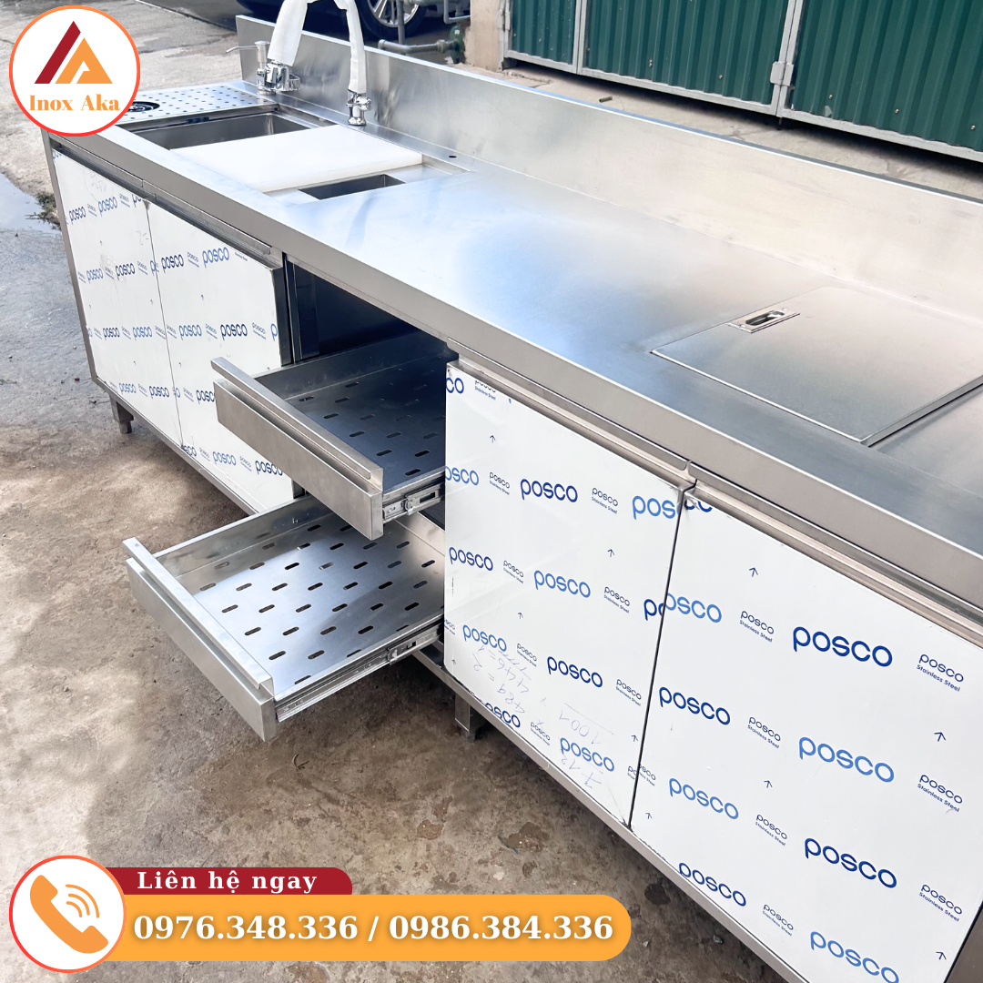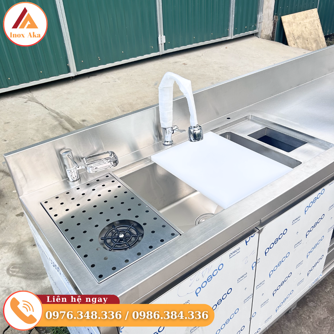 Khám phá quầy pha chế Inox Aka chuyên nghiệp cho quán cà phê, trà sữa và quầy bar đồ uống. Hệ quầy pha chế inox thiết kế khoa học, bền bỉ, tối ưu quy trình pha chế.