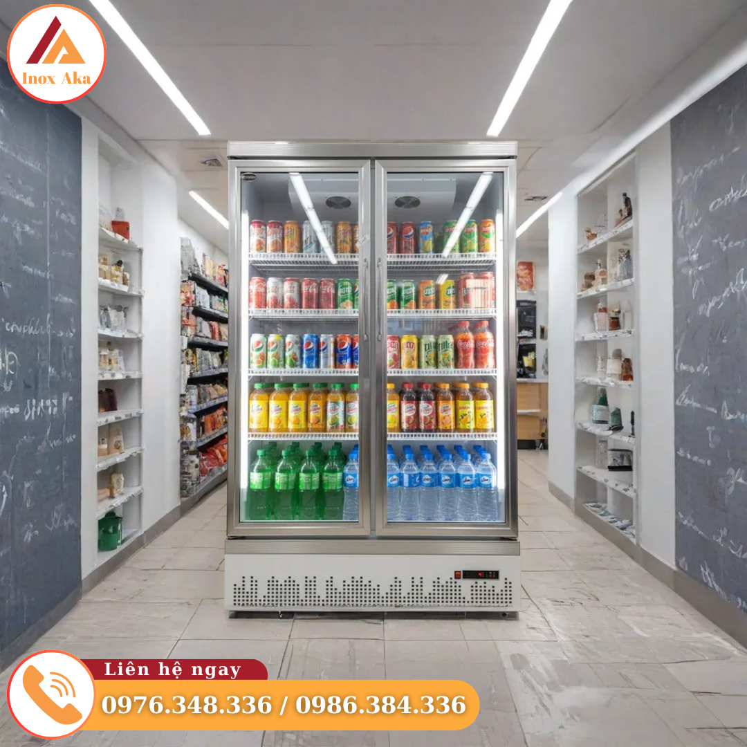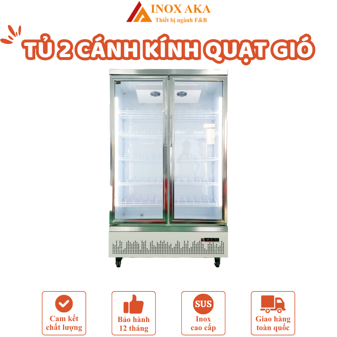 Tủ 2 cánh kính quạt gió với thiết kế hiện đại, dung tích lớn, làm lạnh nhanh và không đóng tuyết. Kính trong suốt chống đọng sương giúp trưng bày nước uống, trái cây và thực phẩm đẹp mắt, phù hợp cho siêu thị và cửa hàng tiện lợi.