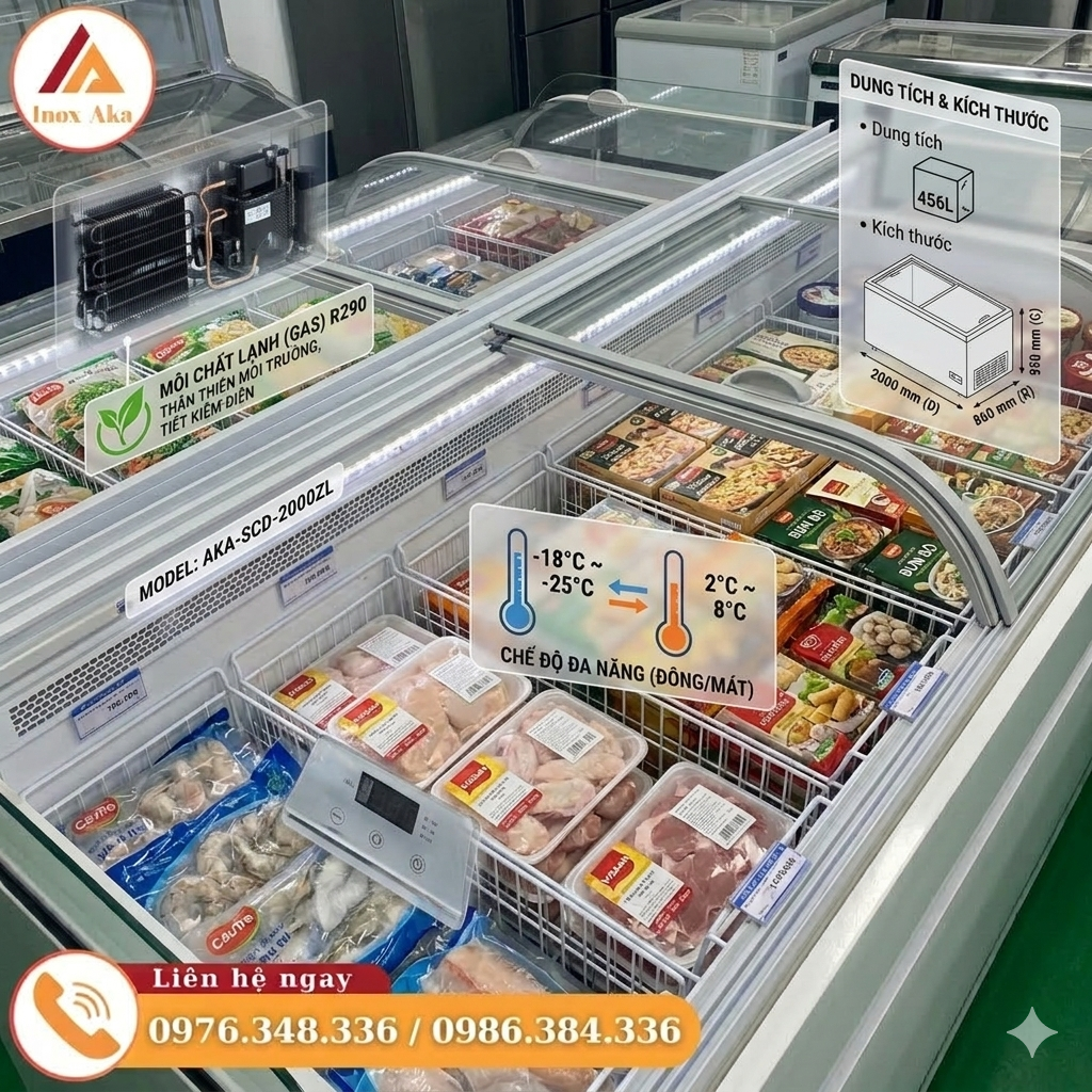 Đầu tiên phải kể đến khả năng tối ưu hóa diện tích. Thay vì phải đầu tư riêng biệt một chiếc tủ đông và một chiếc tủ mát, doanh nghiệp giờ đây chỉ cần một thiết bị duy nhất để thực hiện cả hai chức năng. Điều này đặc biệt hữu ích cho các cửa hàng tiện lợi hoặc siêu thị mini có không gian mặt bằng khiêm tốn.