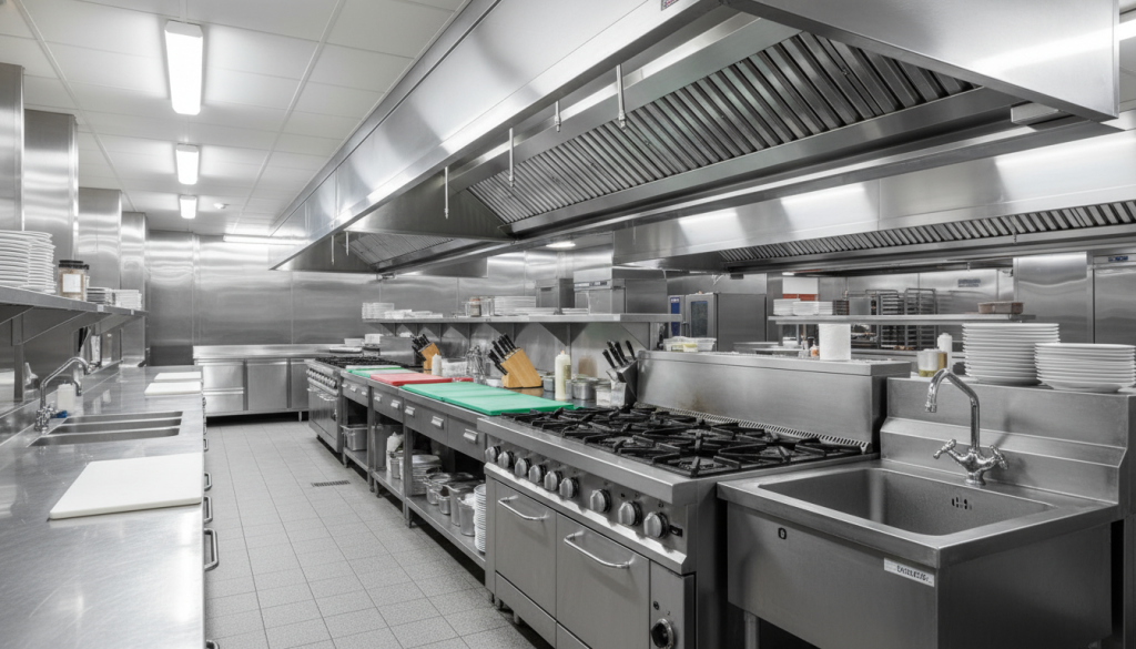 Một nhà hàng sẽ không thể vận hành trơn tru nếu thiếu đi hệ thống thiết bị chuyên dụng được lựa chọn và lắp đặt kỹ lưỡng. Trong hạng mục Thiết kế setup nhà hàng, khu vực bếp luôn được xem là trái tim của toàn bộ mô hình kinh doanh. Tại đây, bạn cần trang bị đầy đủ các loại thiết bị bếp công nghiệp như bếp Á, bếp Âu, lò nướng đa năng, tủ nấu cơm công nghiệp và đặc biệt là hệ thống hút mùi công suất lớn. Đây là yếu tố sống còn trong mọi dự án Thiết kế nhà hàng nhằm đảm bảo không gian nấu nướng luôn thông thoáng, sạch sẽ và không ám mùi ra khu vực khách ngồi.